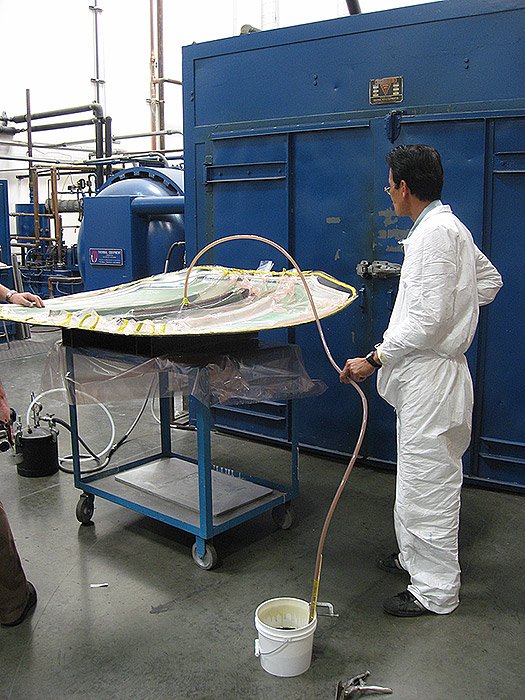 预浸染纤维织物和薄膜渗透纤维织物的成型通常需要在烘炉中的真空袋下使用高温和真空固结。